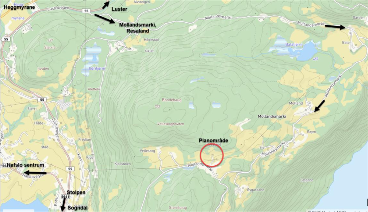 Det vert vist til plan- og bygningslova § 12-8 og varsla oppstart av privat detaljreguleringsplanarbeid for del av Resaland, gnr. 163, bnr. 1 i Luster kommune, PlanID 2025005.
