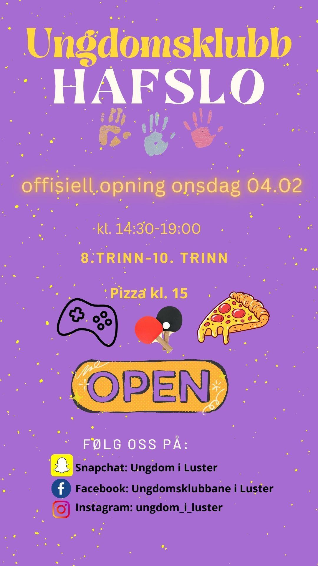 Onsdag 4. februar er det offisiell opning av Hafslo ungdomsklubb, og dette gler me oss veldig til!