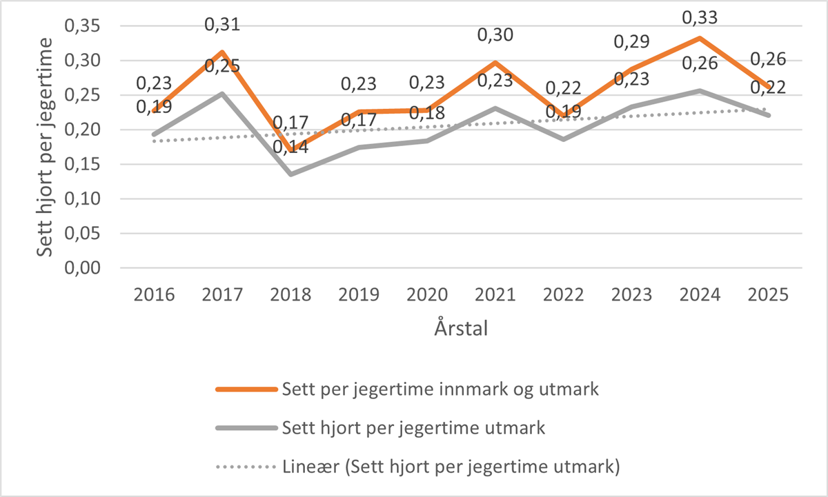 Figur 4: Sett hjort per jegertime år 2016-2025