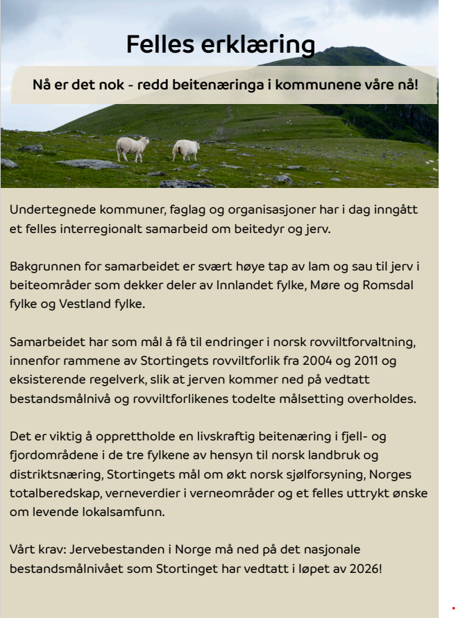 Kravet er at jervebestanden i Norge må ned på det nasjonale bestandsmålnivået som Stortinget har vedteke i løpet av 2026.